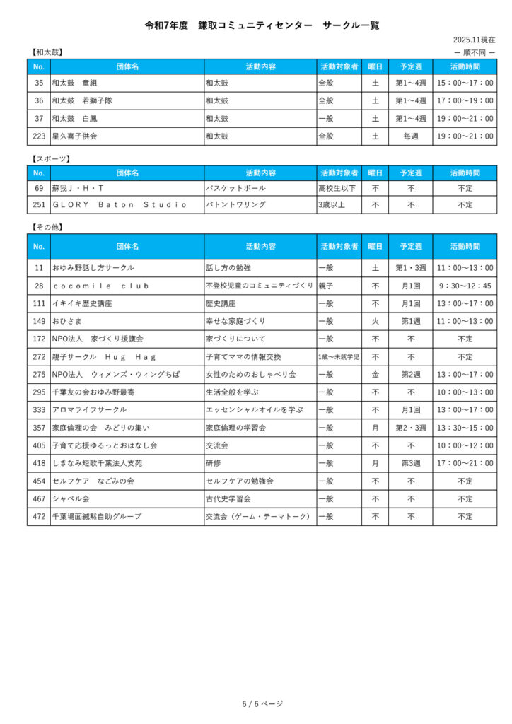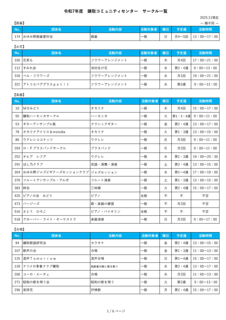 他のコミュニティセンターのサークル情報の閲覧をご希望される場合は、下記のリンク先からご覧いただけます。