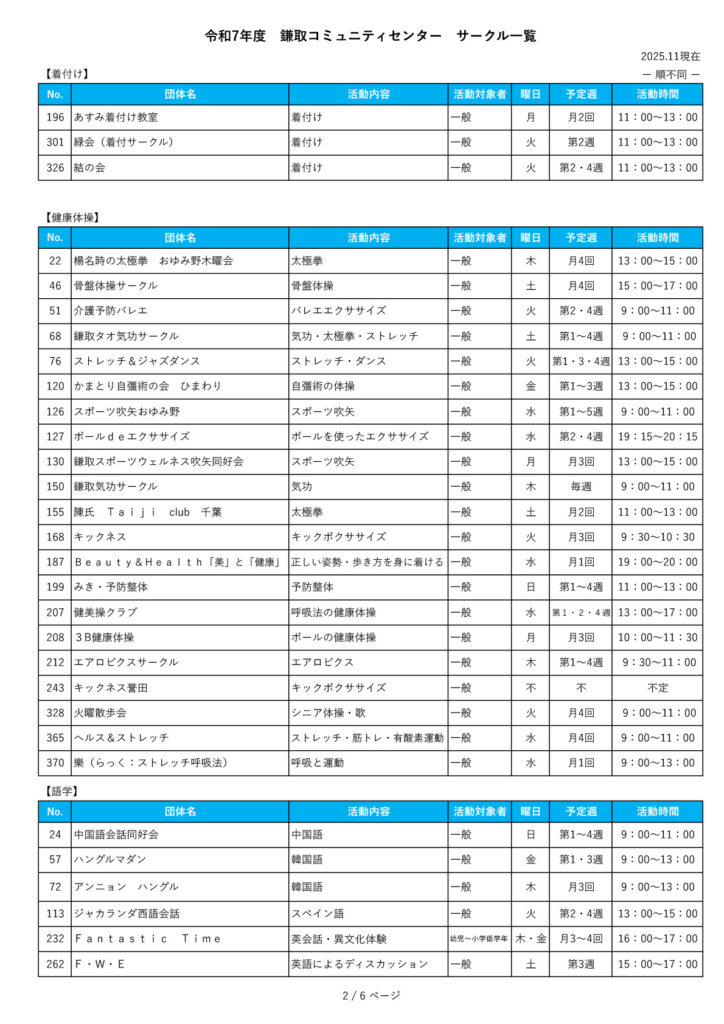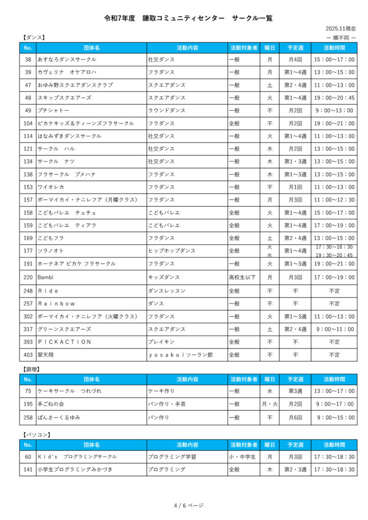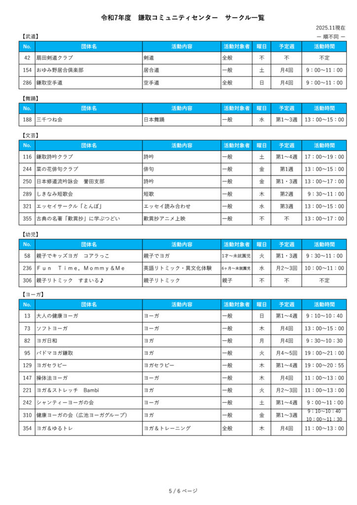 他のコミュニティセンターのサークルについて