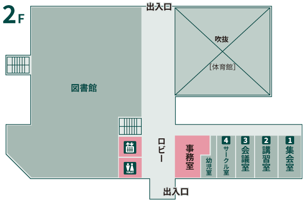 | 2階 | 集会室 | 24 | 会議・打合せ・座談会などに利用できます。 | 48 |